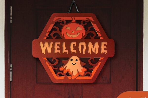 Intra απο ξύλο plywood 3mm-4mm πάχος – Στρογγυλή πινακίδα πόρτας αποκριών με φάντασμα Δίασταση 20×20 cm INTRAFABR-107545350