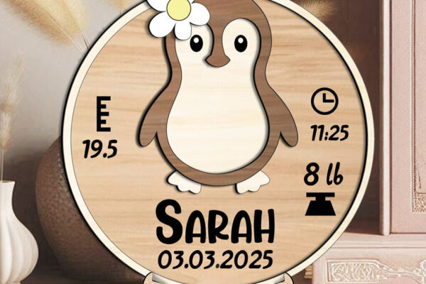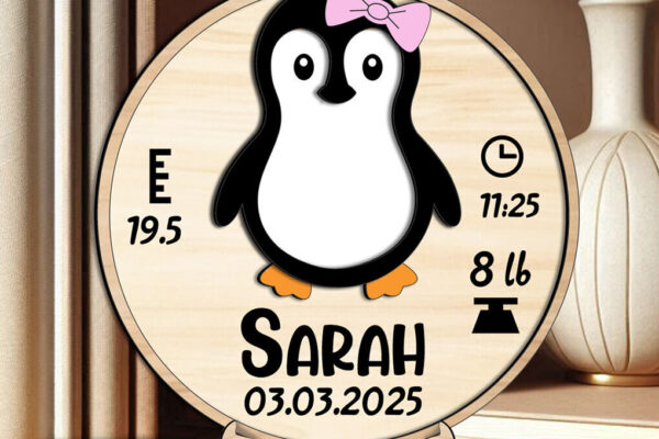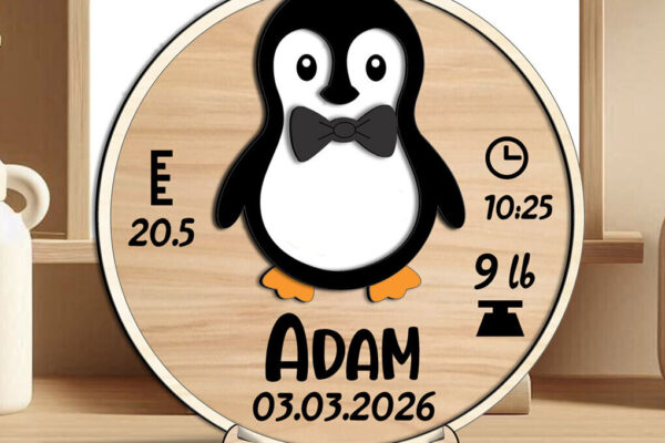 Intra απο ξύλο plywood 3mm-4mm πάχος – Στρογγυλός πίνακας ανακοινώσεων Penguin Baby Δίασταση 45×45 cm INTRAFABR-117578307