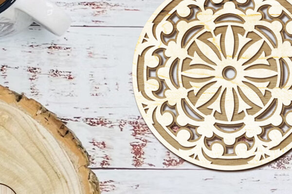 Intra απο ξύλο plywood 3mm-4mm πάχος – Στρογγυλό σουβέρ με στολίδι Δίασταση 20×20 cm INTRAFABR-102808588