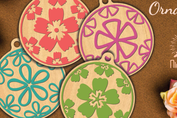 Intra απο ξύλο plywood 3mm-4mm πάχος – Στρογγυλό στολίδι με λουλούδια 3 Δίασταση 6×6 cm INTRAFABR-112467536
