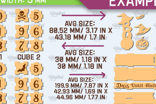 Intra απο ξύλο plywood 3mm-4mm πάχος – Σχέδιο κοπής λέιζερ αντίστροφης μέτρησης για το Halloween Δίασταση 15×15 cm INTRAFABR-104364823
