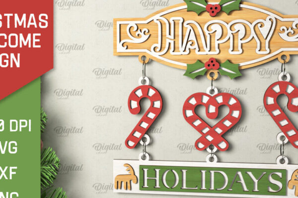 Intra απο ξύλο plywood 3mm-4mm πάχος – Σχέδιο κοπής με λέιζερ χριστουγεννιάτικο σημάδι καλωσορίσματος Δίασταση 15×15 cm INTRAFABR-106608491