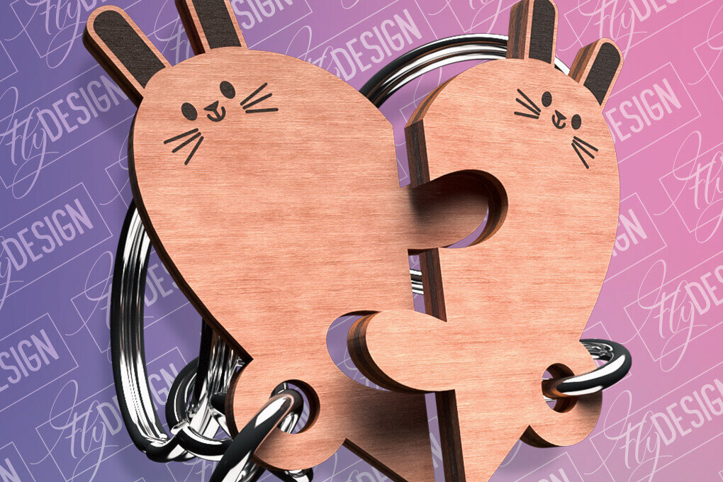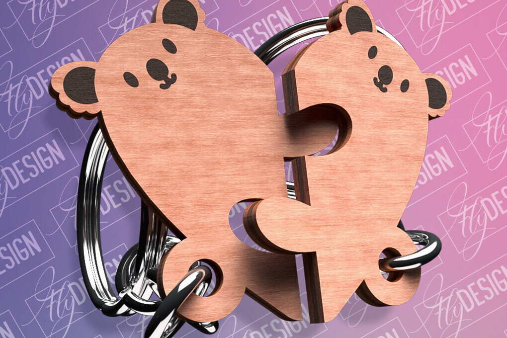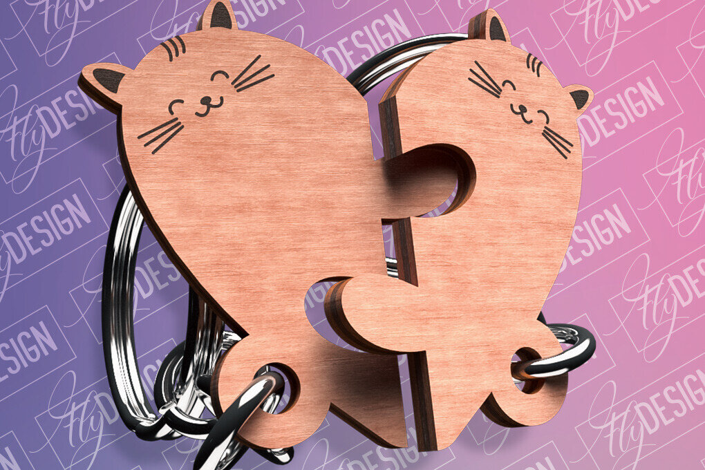 Intra απο ξύλο plywood 3mm-4mm πάχος Σχέδιο κοπής με λέιζερ Μπρελόκ Ζευγάρι Ζώων Δίασταση 6×6 cm INTRAFABR-82392325