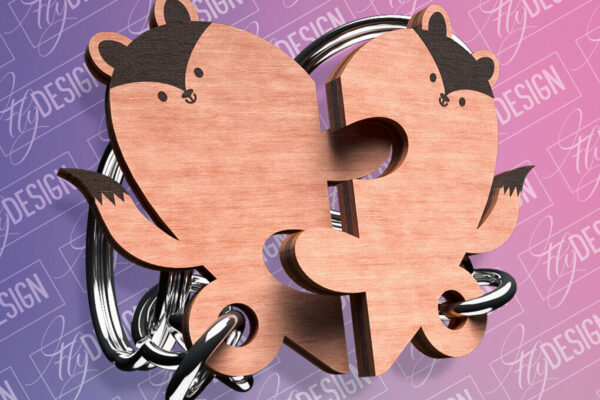 Intra απο ξύλο plywood Χρώμα wenge 3mm-4mm πάχος – με λέιζερ μπρελόκ Fox Couple Δίασταση 4×4 cm INTRAFABR-102113293