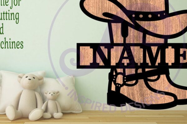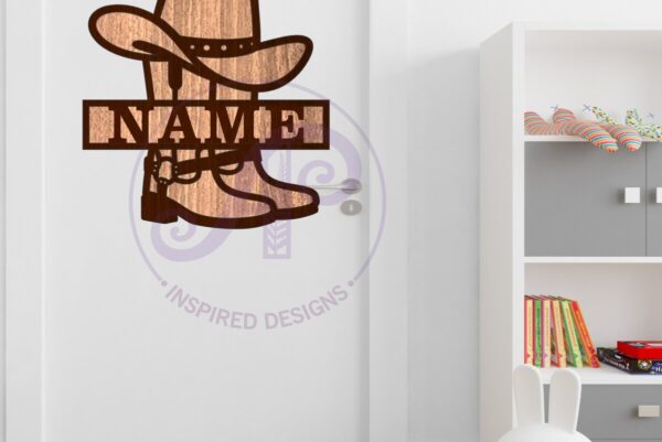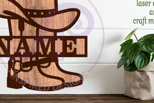 Intra απο ξύλο plywood 3mm-4mm πάχος – Σχέδιο ονόματος καπέλο και μπότες καουμπόη Δίασταση 30×20 cm INTRAFABR-99803659