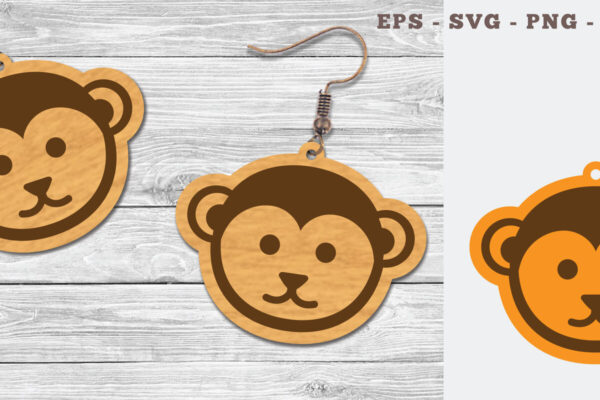 Intra απο ξύλο plywood 3mm-4mm πάχος – Σχέδιο χαριτωμένο μαϊμού σκουλαρίκια κομμένα με λέιζερ Δίασταση 3×3 cm INTRAFABR-107490145