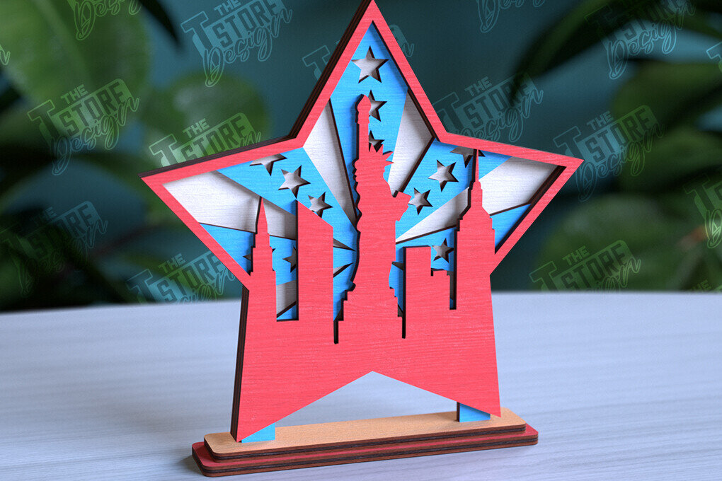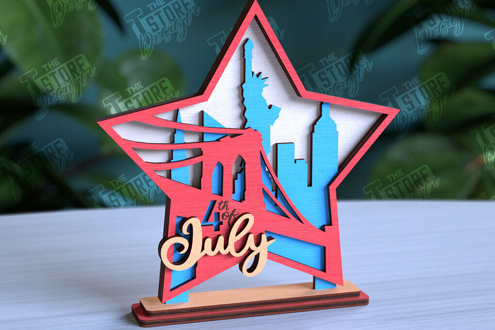 Intra απο ξύλο plywood 3mm-4mm πάχος σχεδιασμού Star Stand 4ης Ιουλίου Δίασταση 15×15 cm INTRAFABR-97721672