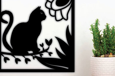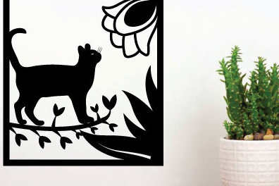 Intra απο ξύλο plywood 3mm-4mm πάχος τέχνης τοίχου με μεταλλικό κομμένο Cat Δίασταση 40×40 cm INTRAFABR-97382319