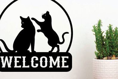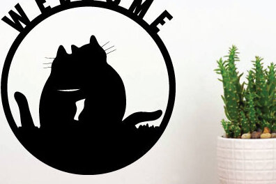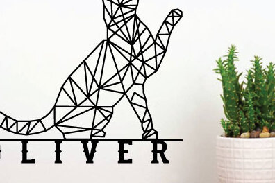 Intra απο ξύλο plywood 3mm-4mm πάχος τέχνης τοίχου με μεταλλικό κομμένο Cat Δίασταση 40×40 cm INTRAFABR-97382485