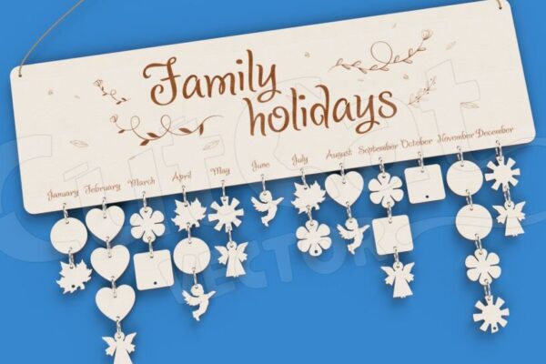 Intra απο ξύλο plywood 3mm-4mm πάχος – Τοίχο Οικογενειακό Ημερολόγιο διακοπών με χαραγμένο Δίασταση 20×20 cm INTRAFABR-119327981