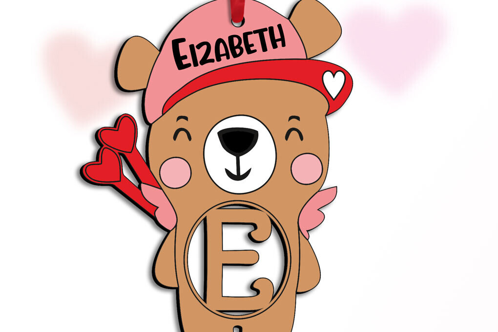 Intra απο ξύλο plywood 3mm-4mm πάχος – Το γράμμα του Αγίου Βαλεντίνου E Bear Cupid Δίασταση 20×20 cm INTRAFABR-111944986