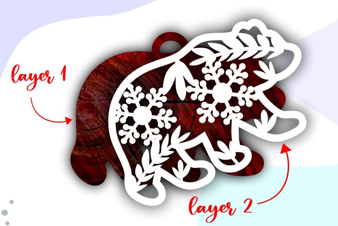 Intra απο ξύλο plywood 3mm-4mm πάχος Τρισδιάστατα χριστουγεννιάτικα στολίδια με στρώματα αρκούδας Δίασταση 8×8 cm INTRAFABR-38994150