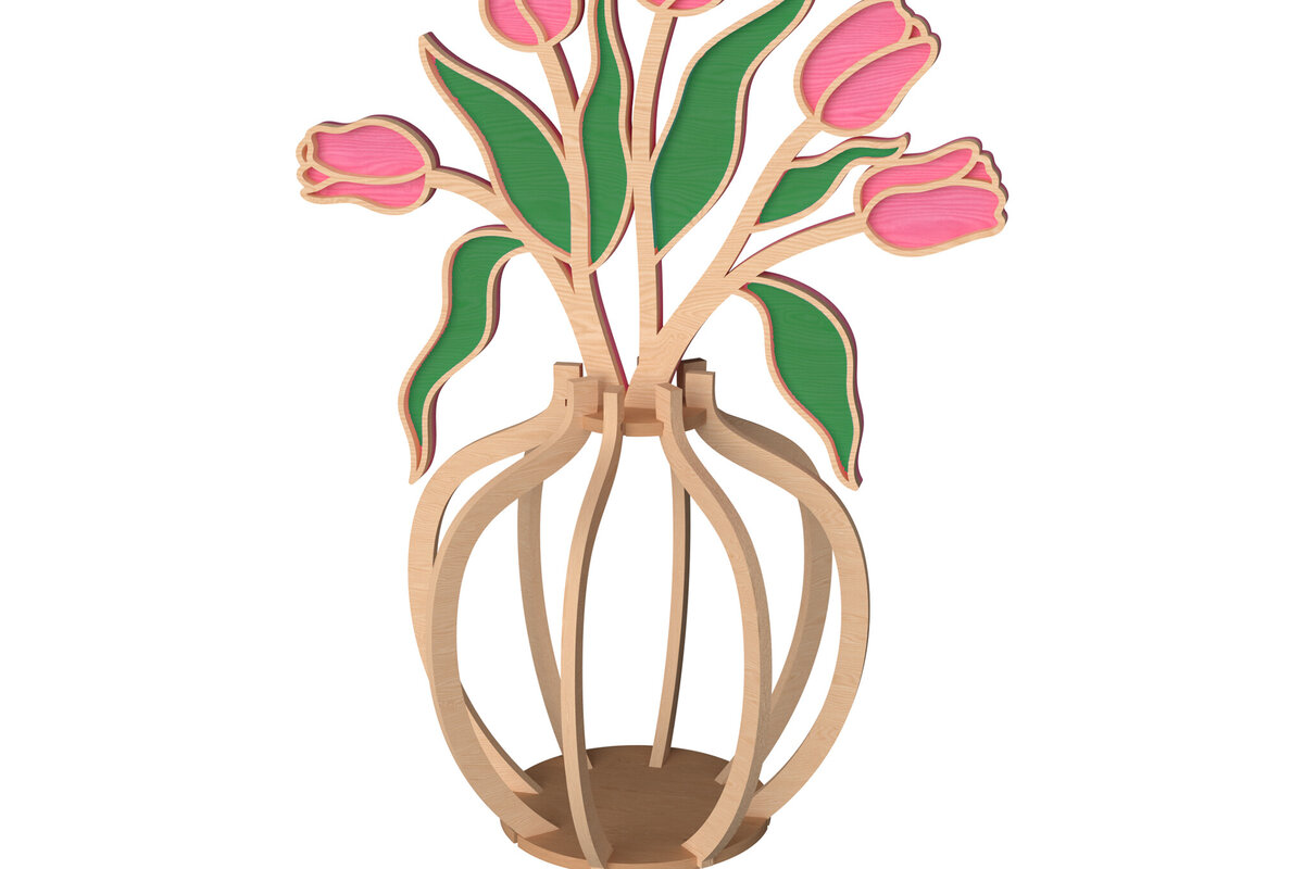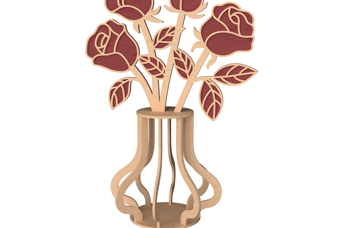 Intra απο ξύλο plywood 3mm-4mm πάχος Τρισδιάστατη δέσμη βάζου λουλουδιών Δίασταση 30×20 cm INTRAFABR-111957361