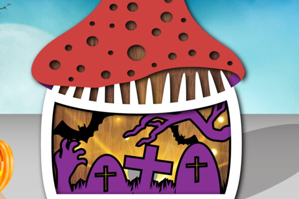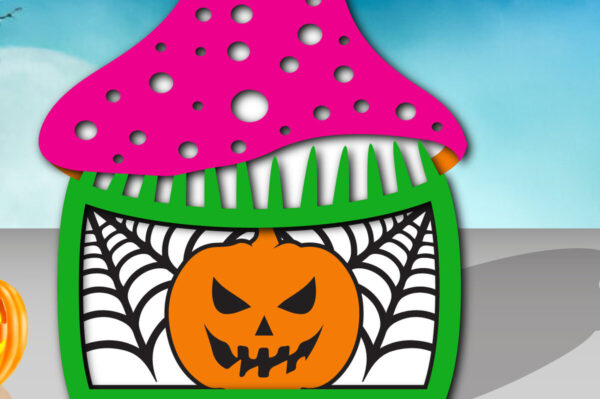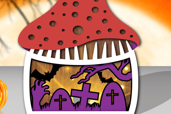Intra απο ξύλο plywood Χρώμα wenge 3mm-4mm πάχος – Τρισδιάστατη δέσμη αποκοπής με λέιζερ Halloween Mushroom Δίασταση 15×15 cm INTRAFABR-70273900