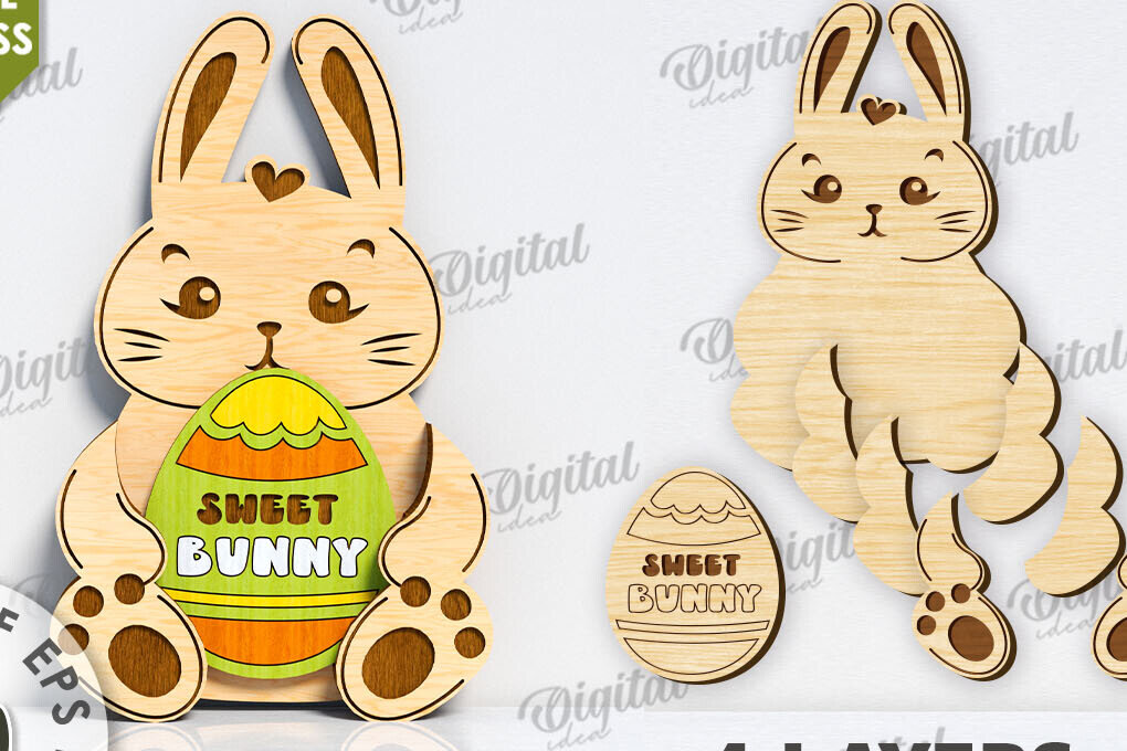 Intra απο ξύλο plywood 3mm-4mm πάχος Τρισδιάστατη Πασχαλινό λαγουδάκι. Πασχαλινή διακόσμηση Δίασταση 15×15 cm INTRAFABR-117700459