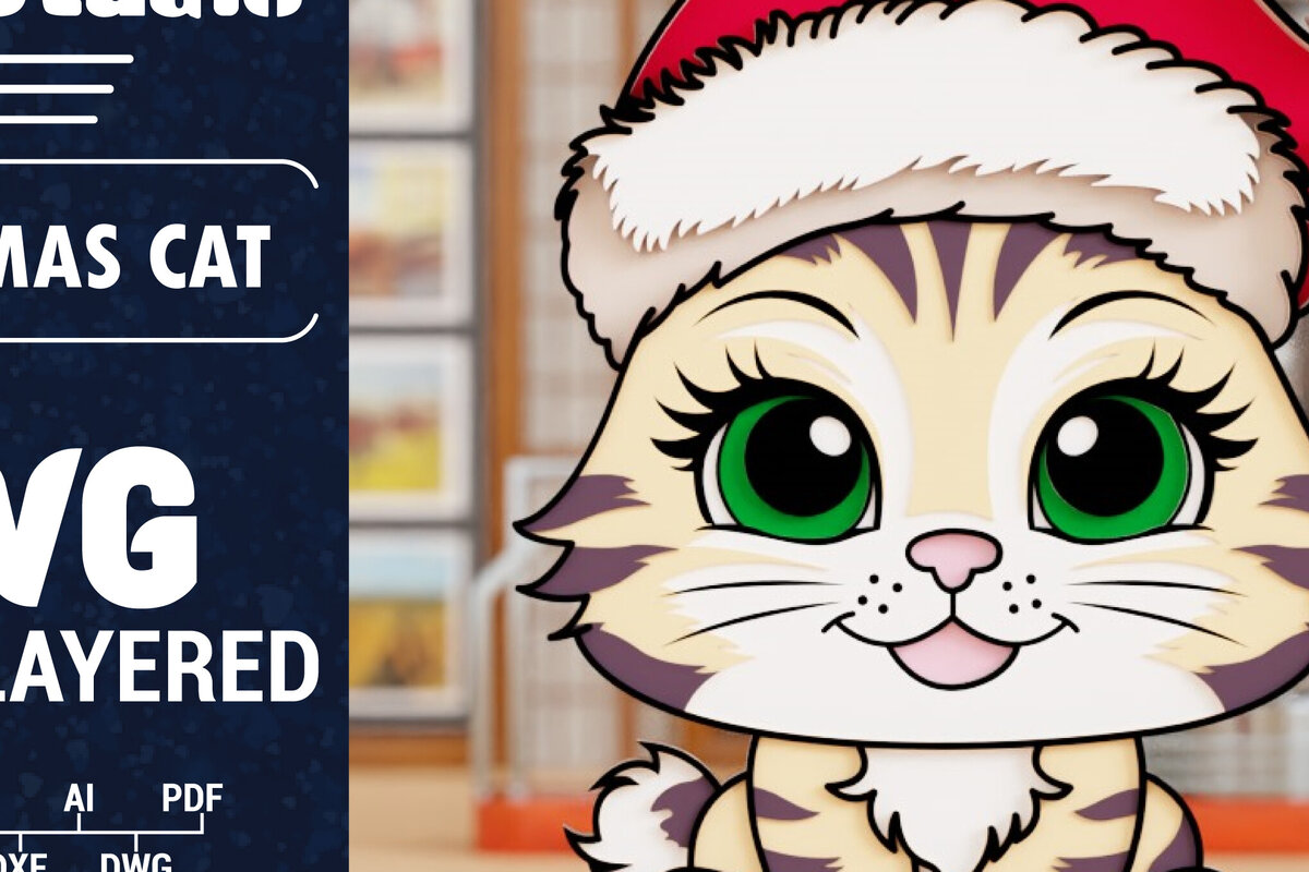 Intra απο ξύλο plywood 3mm-4mm πάχος Τρισδιάστατη χριστουγεννιάτικη γάτα Δίασταση 1500×1500 cm INTRAFABR-101944465