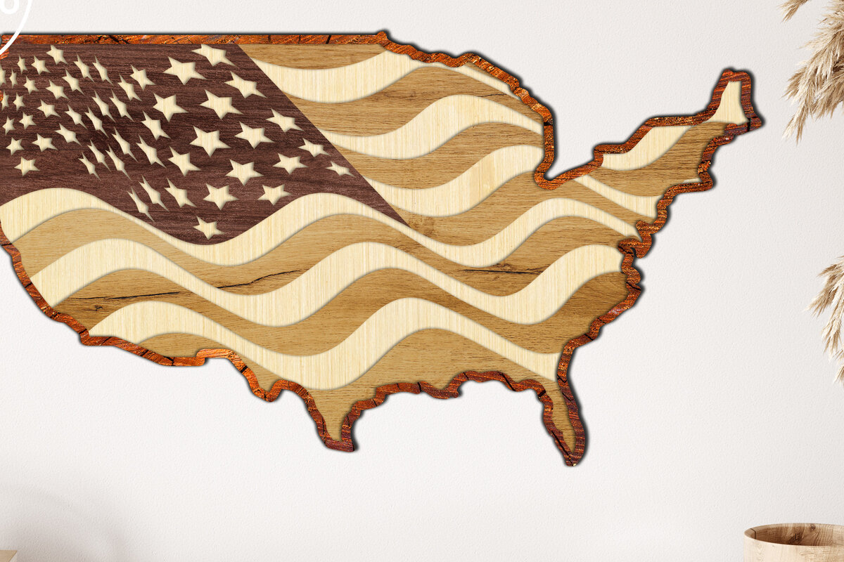 Intra απο ξύλο plywood 3mm-4mm πάχος Τρισδιάστατος χάρτης ΗΠΑ 4th of July Cut Δίασταση 30×20 cm INTRAFABR-12495674