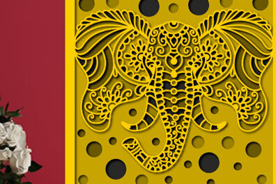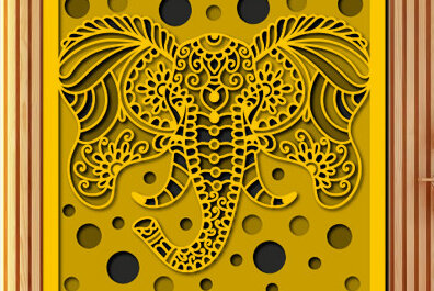 Intra απο ξύλο plywood 3mm-4mm πάχος Τρισδιάστατο κουτί σκιών με κεφαλιού ελέφαντα Δίασταση 25×25 cm INTRAFABR-71777488