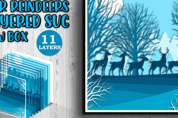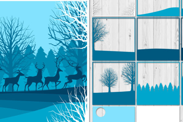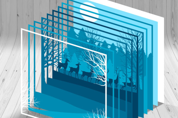 Intra απο ξύλο plywood 3mm-4mm πάχος – Τρισδιάστατο κουτί σκιών Winter Deer Layered Δίασταση 20×20 cm INTRAFABR-17286713