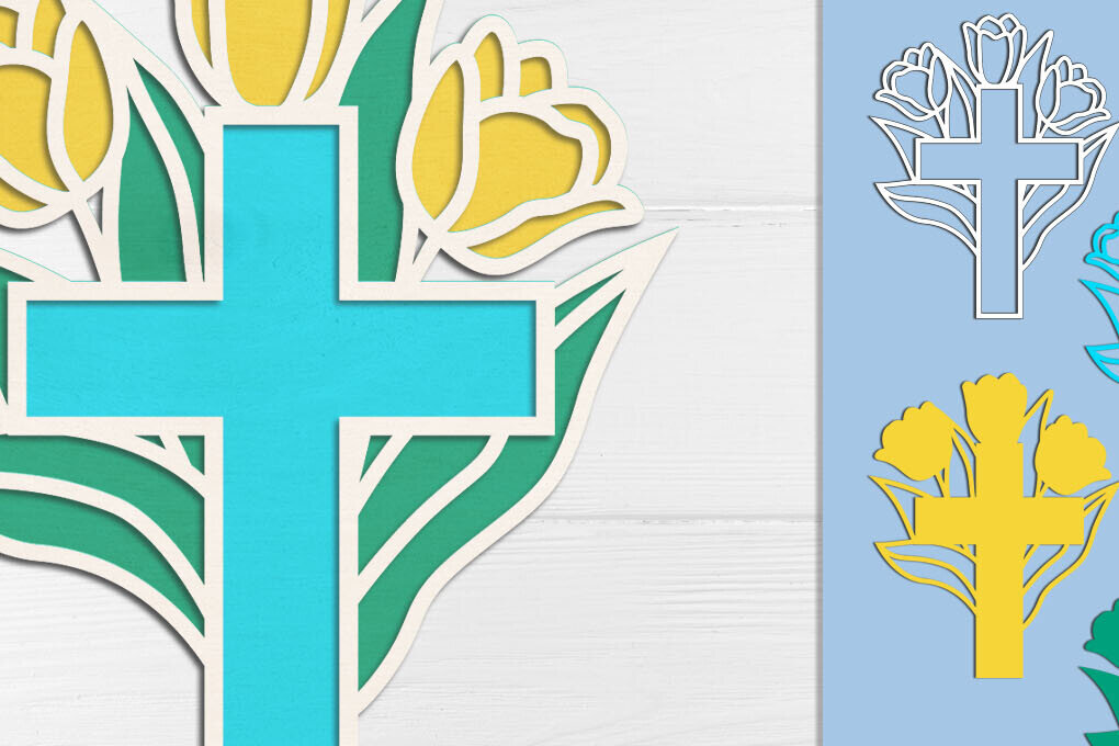 Intra απο ξύλο plywood 3mm-4mm πάχος τρισδιάστατο Πάσχα κοπής με λέιζερ σταυρός λουλουδιών Δίασταση 5×5 cm INTRAFABR-118141684
