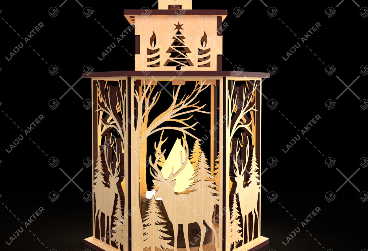 Intra απο ξύλο plywood 3mm-4mm πάχος Τρισδιάστατο Χριστουγεννιάτικο Φανάρι με λέιζερ 02 Δίασταση 15×15 cm INTRAFABR-84703108