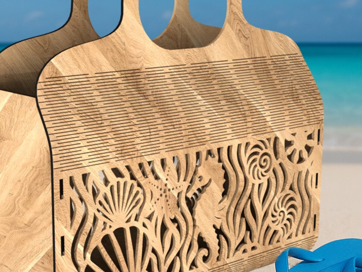 Intra απο ξύλο plywood 3mm-4mm πάχος Τσάντα παραλίας με Marine Life Δίασταση 3×3 cm INTRAFABR-124377054