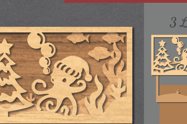 Intra απο ξύλο plywood 3mm-4mm πάχος – Υποβρύχια χριστουγεννιάτικη σκηνή κοπής με λέιζερ Δίασταση 20×20 cm INTRAFABR-112551916