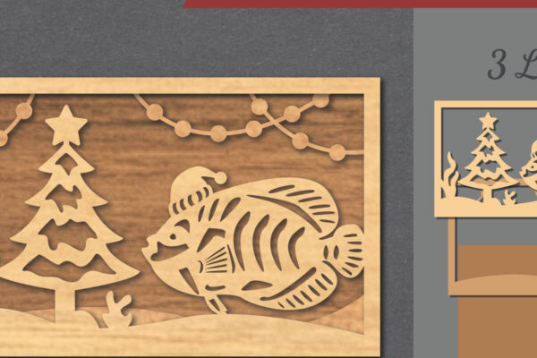 Intra απο ξύλο plywood 3mm-4mm πάχος – Υποβρύχια χριστουγεννιάτικη σκηνή κοπής με λέιζερ Δίασταση 20×20 cm INTRAFABR-112552081