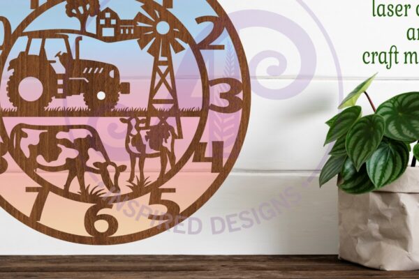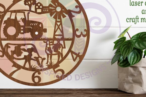 Intra απο ξύλο plywood 3mm-4mm πάχος – Φάρμα Ρολόι τοίχου με Laser Cut Files, Δίασταση 30×20 cm INTRAFABR-86322344