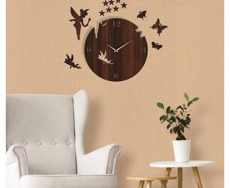 Intra απο ξύλο plywood 3mm-4mm πάχος – Φανταχτερό ρολόι τοίχου Fairy για Σχέδιο Διακόσμησης Δωματίου ξύλο 30×35 cm INTRAVECTRY-MY557164