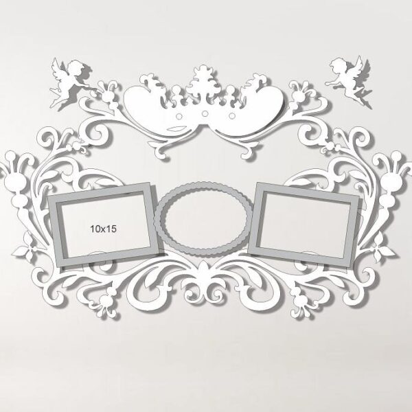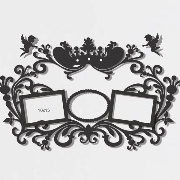 Intra απο ξύλο plywood 3mm-4mm πάχος – Φλοράλ Σχέδιο με Άγγελοι 3 Εικόνες Κορνίζα 30×35 cm INTRAVECTRY-MY558545