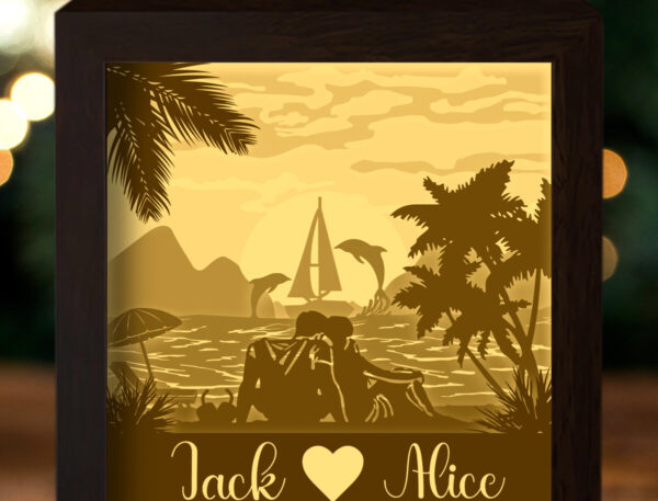 Intra απο ξύλο plywood 3mm-4mm πάχος – Φωτιστικό κουτί με κομμένο χαρτί θαλάσσης Δίασταση 20×20 cm INTRAFABR-27640202