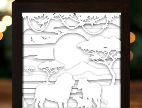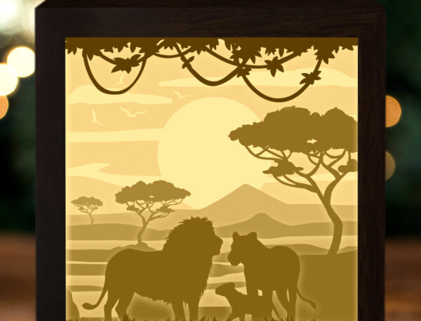 Intra απο ξύλο plywood Χρώμα wenge 3mm-4mm πάχος – Φωτιστικό κουτί Family Lion 3 Paper Cut Δίασταση 20×20 cm INTRAFABR-95648842