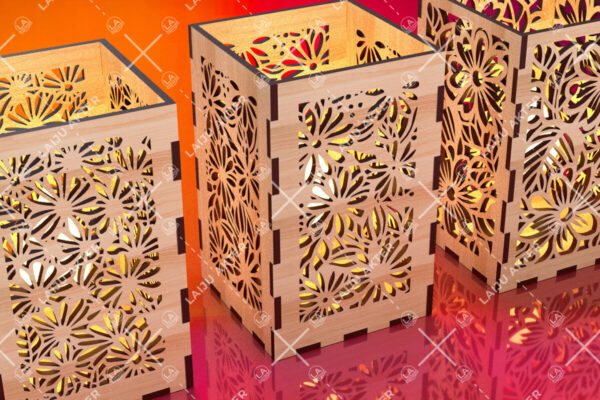 Intra απο ξύλο plywood 3mm-4mm πάχος – Φύλλα λουλουδιών Κηροπήκτης Laser Cut 07 Δίασταση 20×20 cm INTRAFABR-109023410
