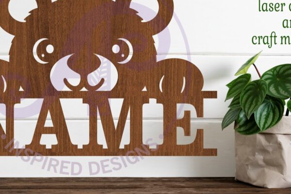 Intra απο ξύλο plywood 3mm-4mm πάχος – Χαριτωμένο αρκουδάκι με όνομα Laser Cut Δίασταση 30×20 cm INTRAFABR-110216110