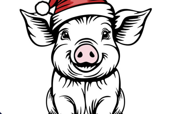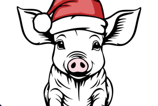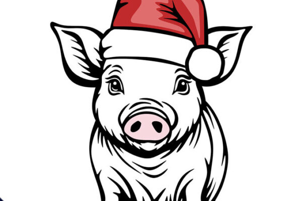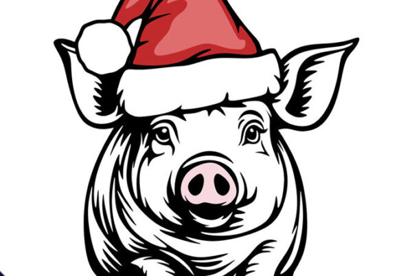 Intra απο ξύλο plywood Χρώμα wenge 3mm-4mm πάχος – Χαριτωμένο γουρουνάκι με χριστουγεννιάτικα σχέδια με καπέλο Άγιου Βασίλη Δίασταση 30×20 cm INTRAFABR-119321908