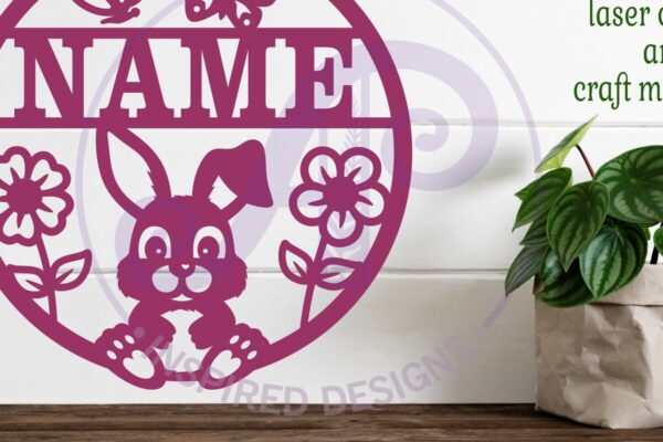 Intra απο ξύλο plywood 3mm-4mm πάχος – Χαριτωμένο λαγουδάκι με όνομα Laser Δίασταση 30×20 cm INTRAFABR-119341261