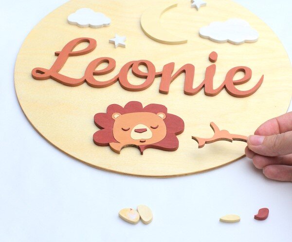Intra απο ξύλο plywood 3mm-4mm πάχος – Χαριτωμένο σημάδι ονόματος λιονταριού Δίασταση 30×30 cm Intraeaxys-e1gk688o