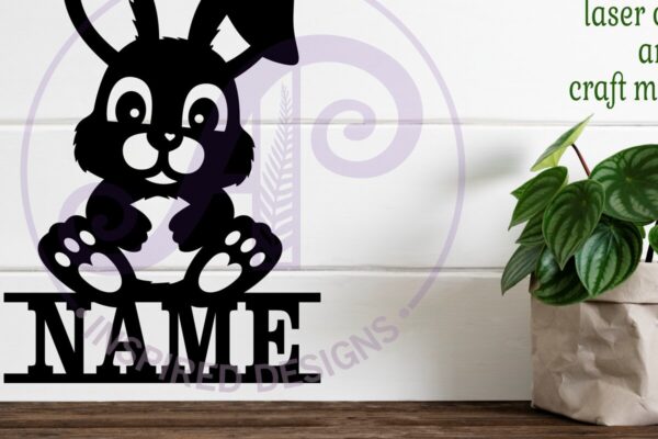 Intra απο ξύλο plywood 3mm-4mm πάχος – Χαριτωμένο σημάδι ονόματος λαγουδάκι κάθεται Δίασταση 40×50 cm INTRAFABR-119283779