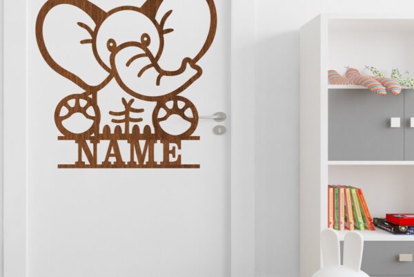 Intra απο ξύλο plywood Χρώμα wenge 3mm-4mm πάχος – Χαριτωμένο σημάδι ονόματος ελέφαντα Δίασταση 30×20 cm INTRAFABR-80384679