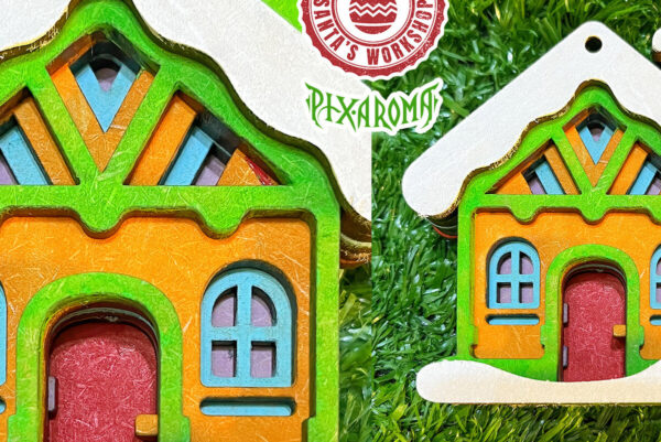 Intra απο ξύλο plywood Χρώμα wenge 3mm-4mm πάχος – Χαριτωμένο χριστουγεννιάτικο σπίτι Δίασταση 20×25 cm INTRAFABR-52603616