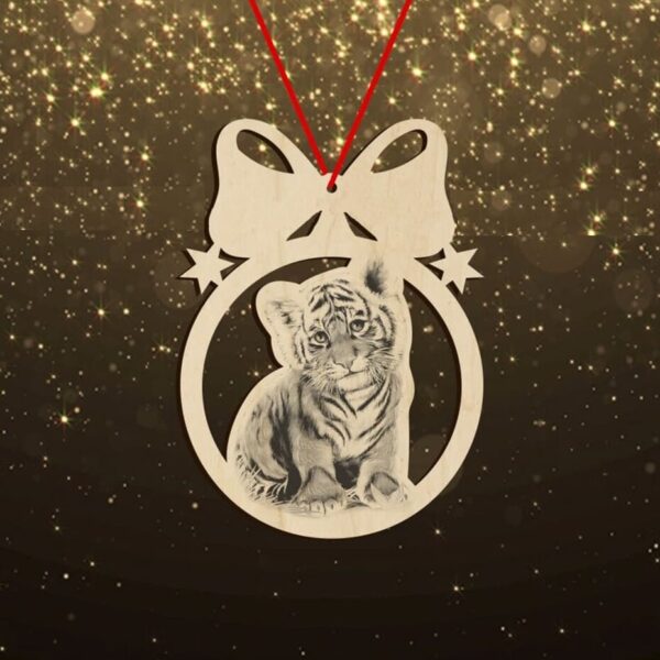 Intra απο ξύλο plywood 3mm-4mm πάχος – Χαριτωμένο Tiger Cub σε Χριστουγεννιάτικη Κρεμαστή Μπάλα 20×25 cm INTRAVECTRY-MY548817