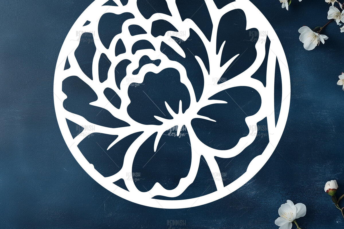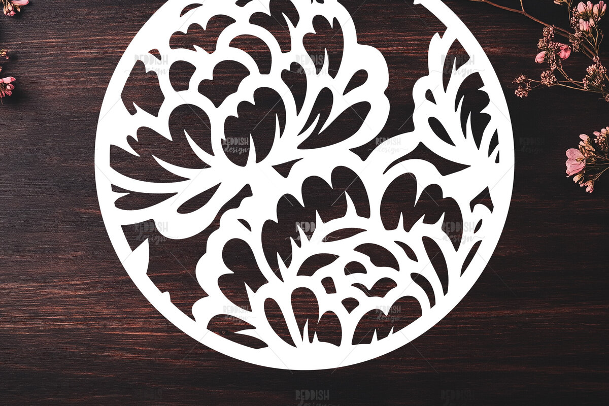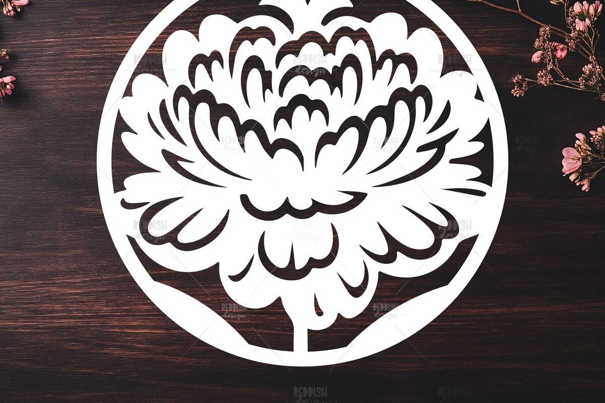 Intra απο ξύλο plywood 3mm-4mm πάχος Χαρτί κομμένο στρογγυλό σημάδι 10 λουλουδιών παιώνιας Δίασταση 15×15 cm INTRAFABR-122604270