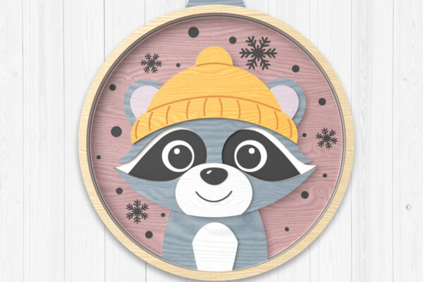 Intra απο ξύλο plywood 3mm-4mm πάχος – Χειμερινό στολίδι ρακούν με λέιζερ Δίασταση 20×20 cm INTRAFABR-106511756