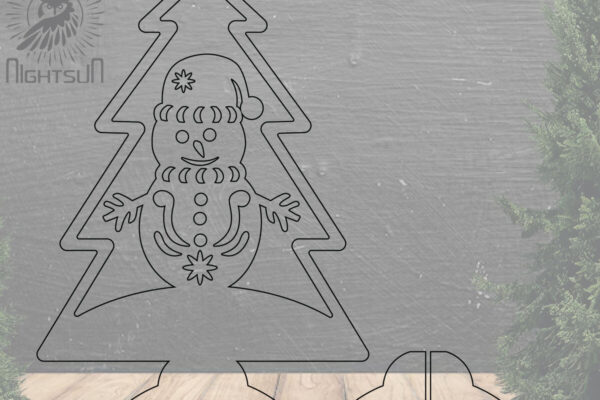Intra απο ξύλο plywood 3mm-4mm πάχος – Χιονάνθρωπος σε δέντρο με λέιζερ διακόσμηση σπιτιού Δίασταση 20×20 cm INTRAFABR-112790318