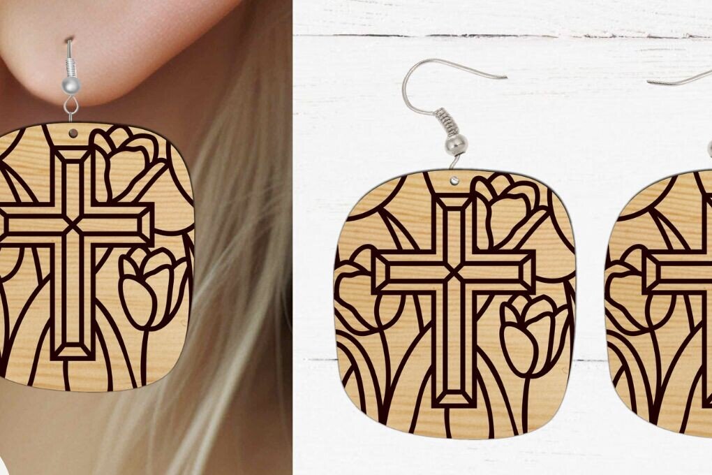 Intra απο ξύλο plywood 3mm-4mm πάχος Χριστιανικό Σκουλαρίκι με File, Πάσχα Δίασταση 3×3 cm INTRAFABR-92865614