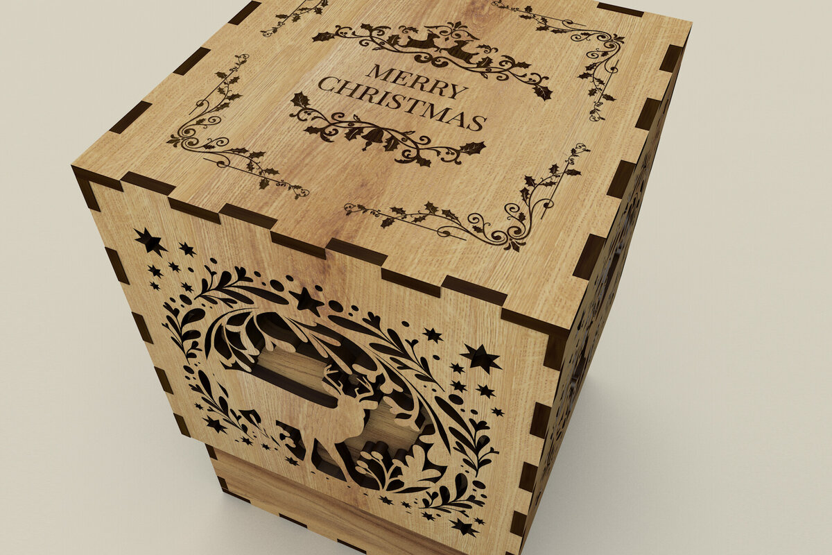 Intra απο ξύλο plywood 3mm-4mm πάχος Χριστουγεννιάτικο κουτί δώρου με ελάφια Δίασταση 15×15 cm INTRAFABR-108828253