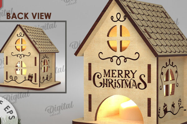 Intra απο ξύλο plywood 3mm-4mm πάχος Χριστουγεννιάτικο Σπίτι Κηροπήγιο Δίασταση 15×15 cm INTRAFABR-108506410