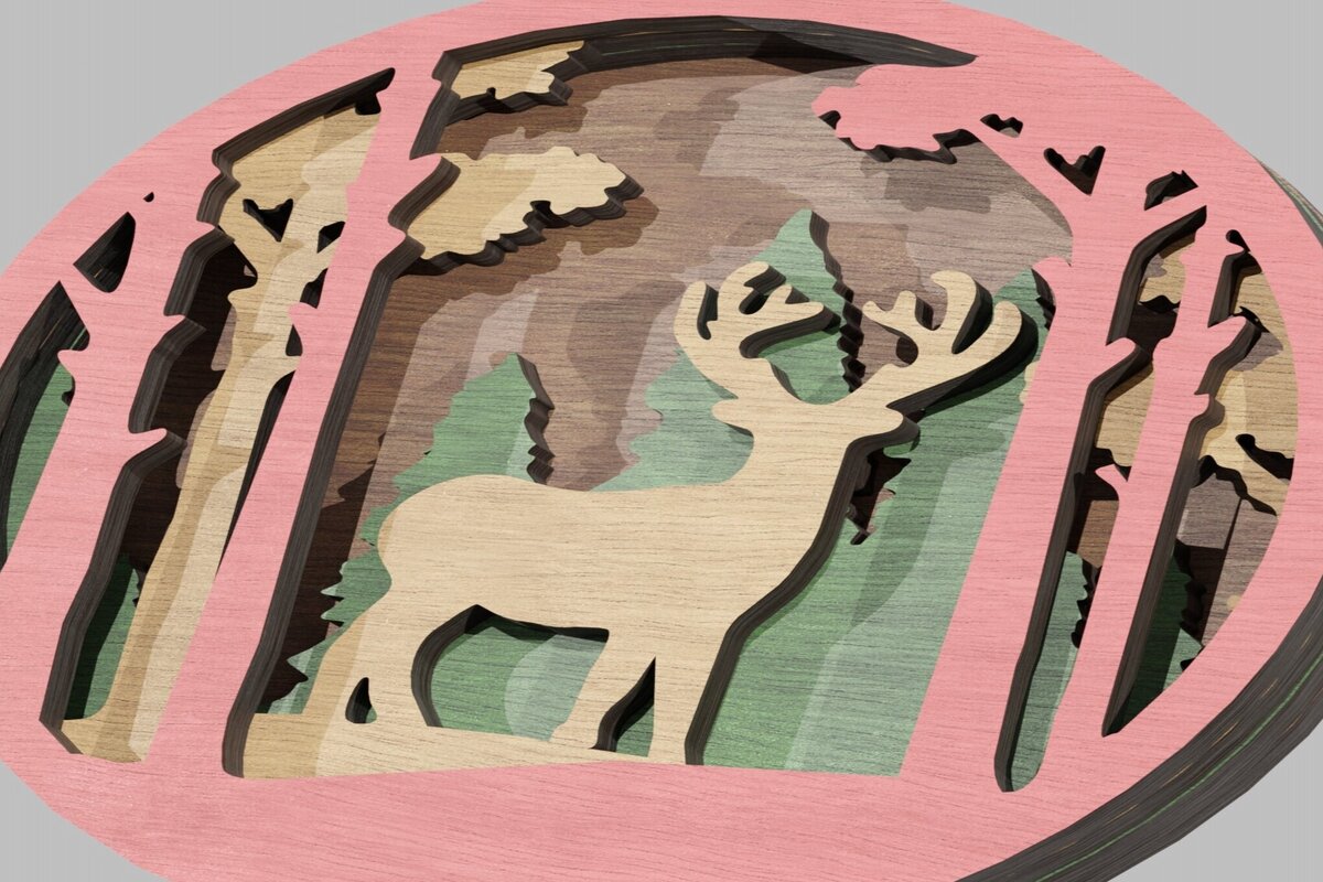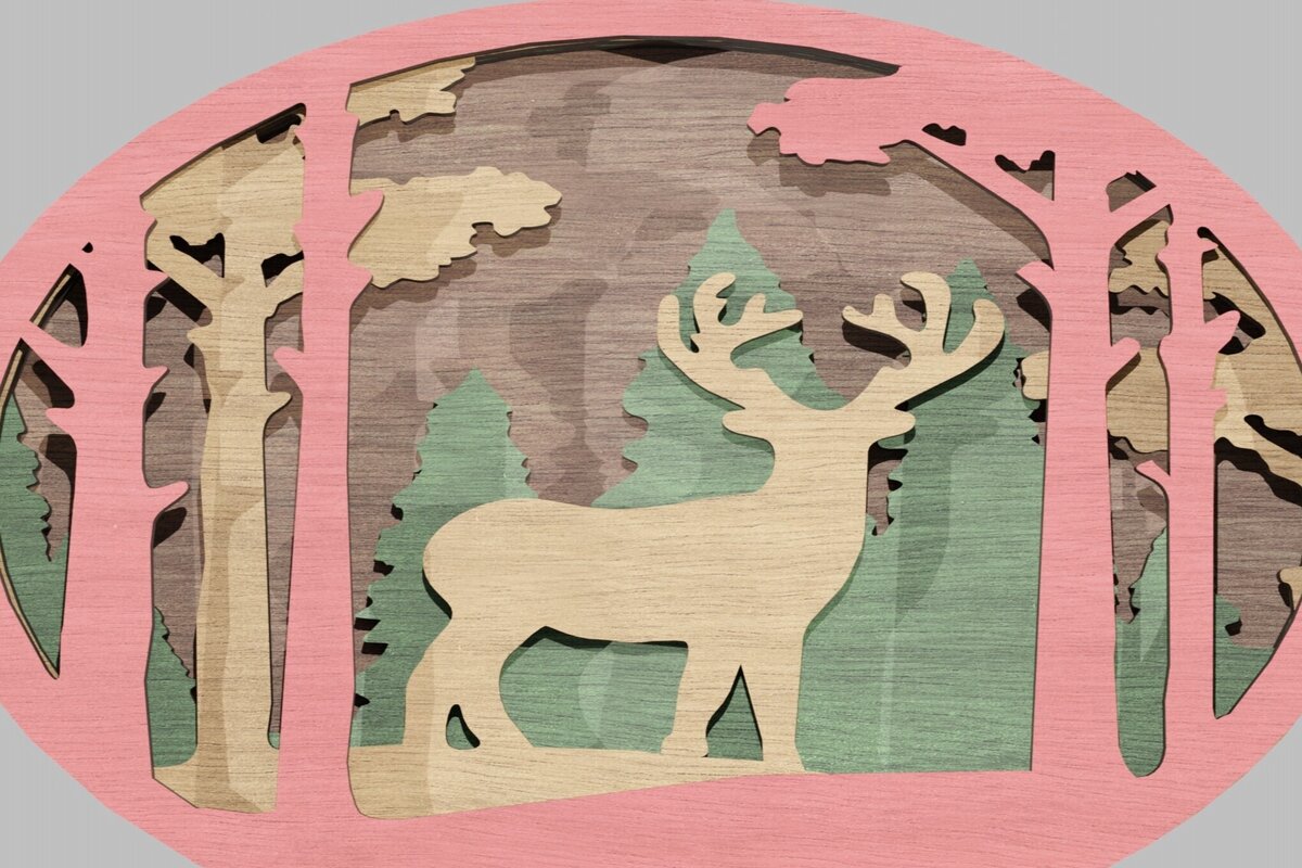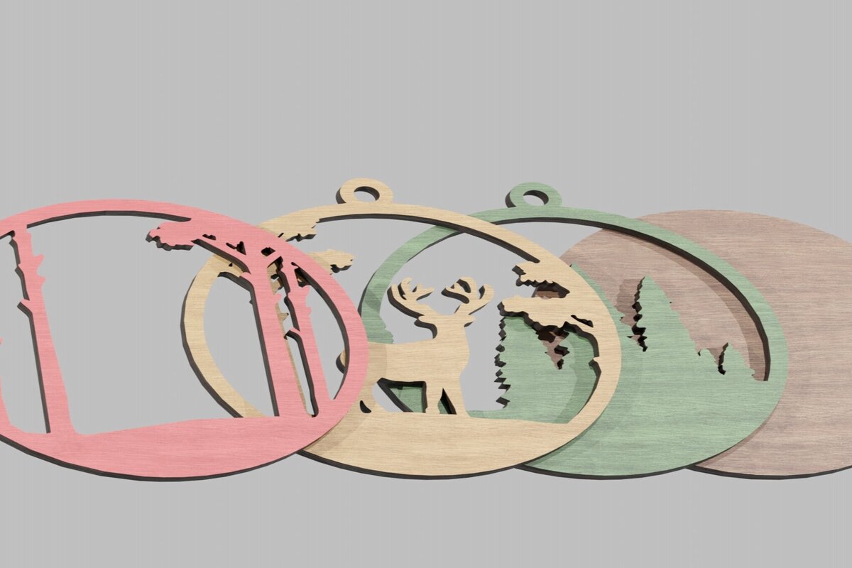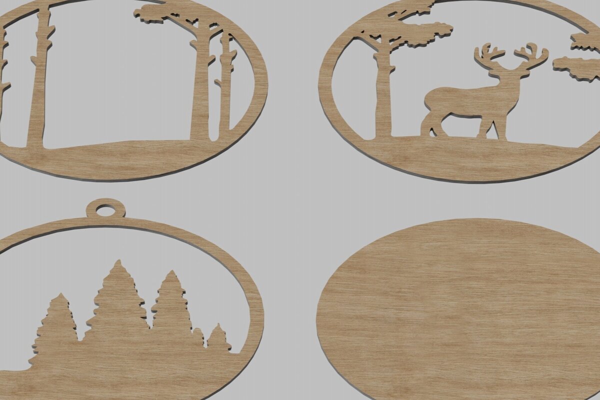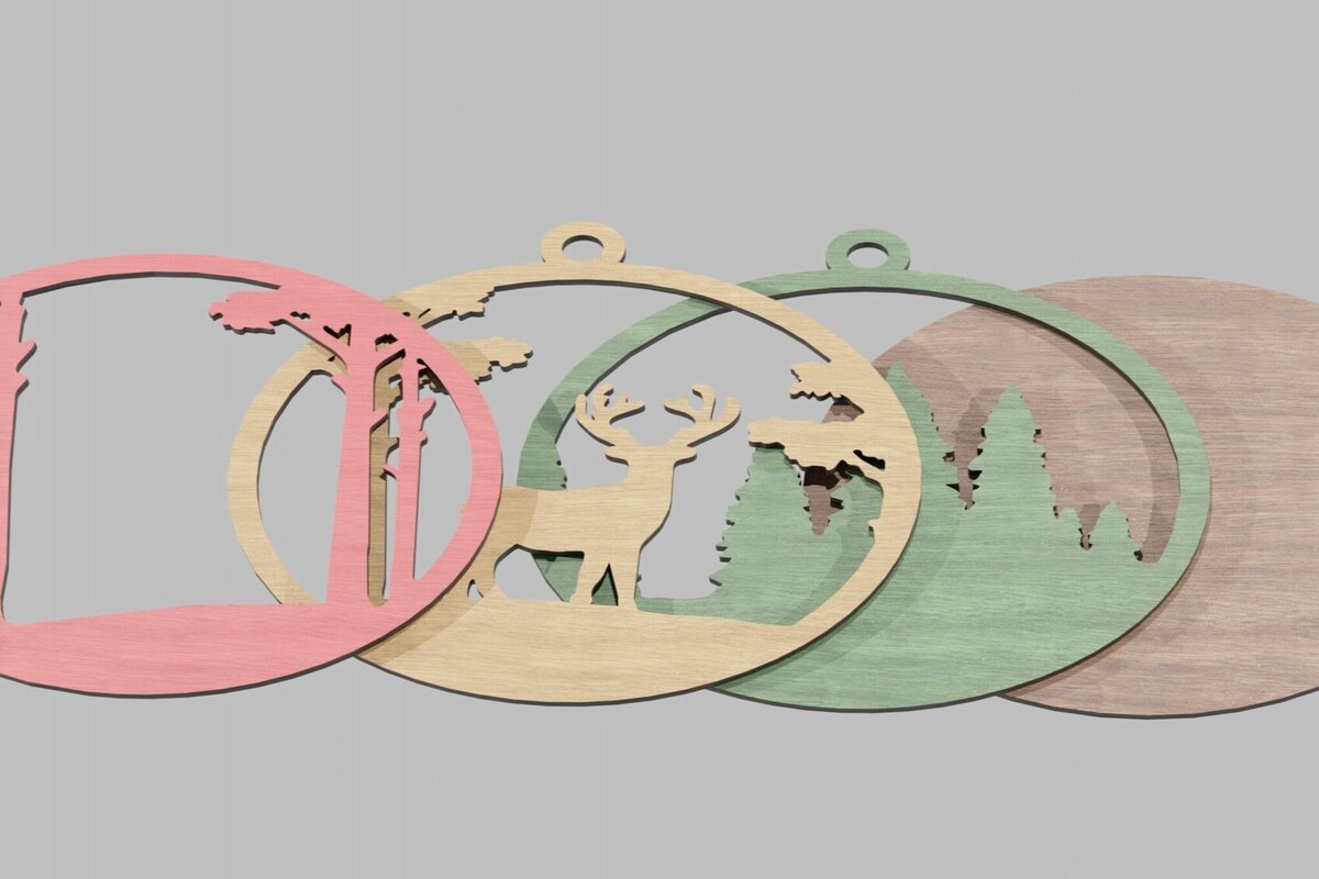 Intra απο ξύλο plywood 3mm-4mm πάχος Χριστουγεννιάτικο στολίδι Ελάφια στο δάσος Δίασταση 8×8 cm INTRAFABR-113819164