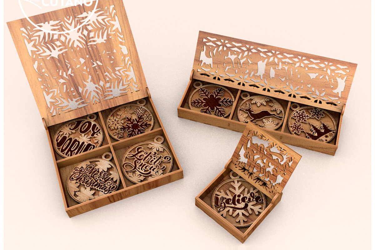 Intra απο ξύλο plywood 3mm-4mm πάχος Χριστουγεννιάτικα στολίδια με κουτιά Δίασταση 1×1 cm INTRAFABR-84731174